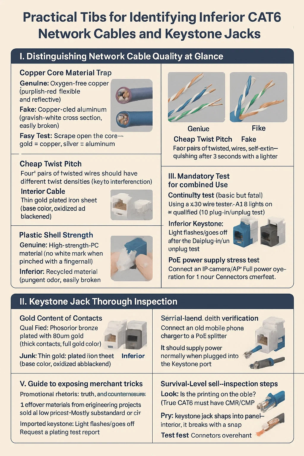 Praktické tipy na identifikáciu nekvalitných sieťových káblov CAT6 a konektorov Keystone