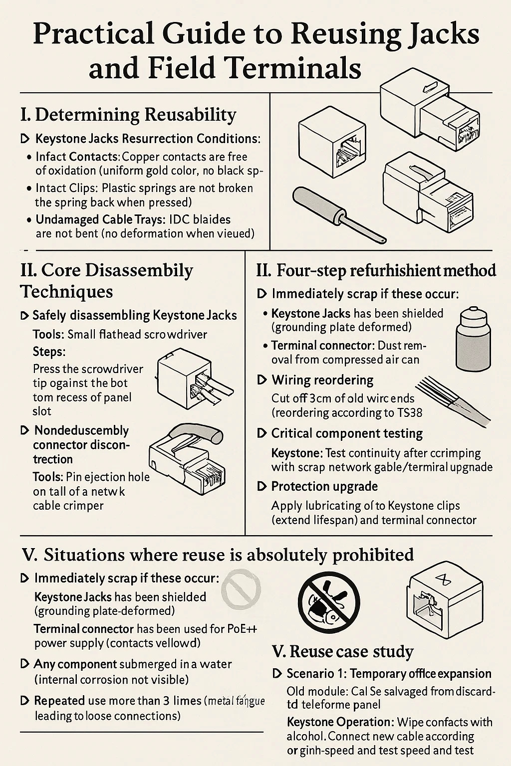 Praktický sprievodca opätovným použitím konektorov Keystone a Zástrčky na ukončenie poľa